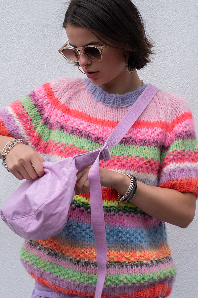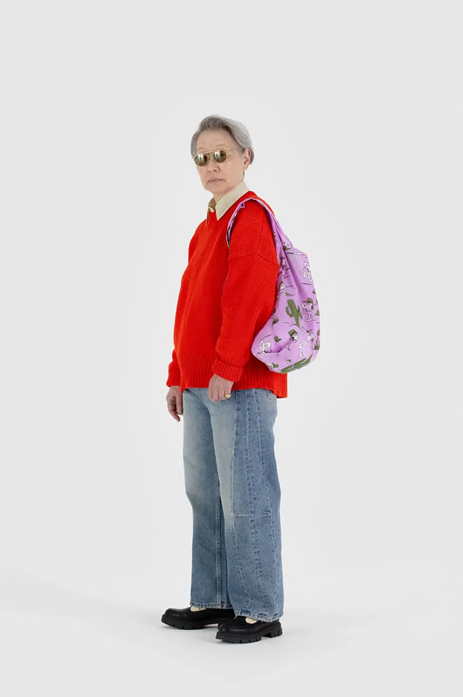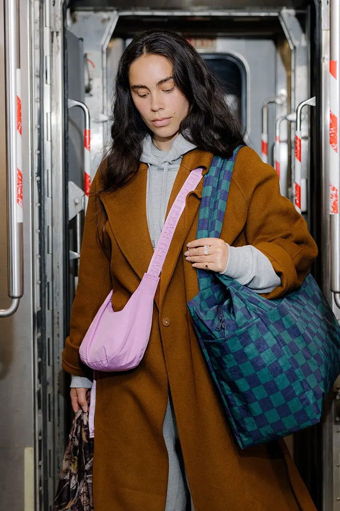 Baggu Large Nylon Crescent Mixed Plaid Bag