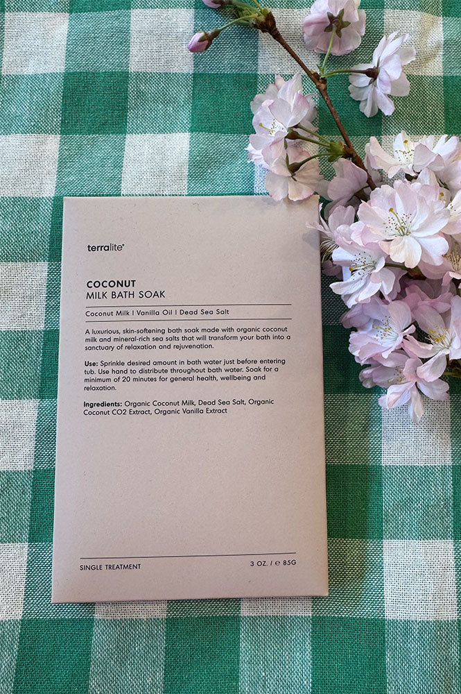 Organic coconut milk and pink Himalayan mineral salts infused with rose oils and finely ground petals for a deeply nourishing bath soak.