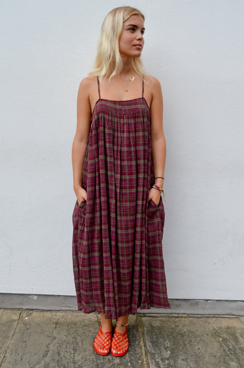 Amente Check Pleated Cami Dress