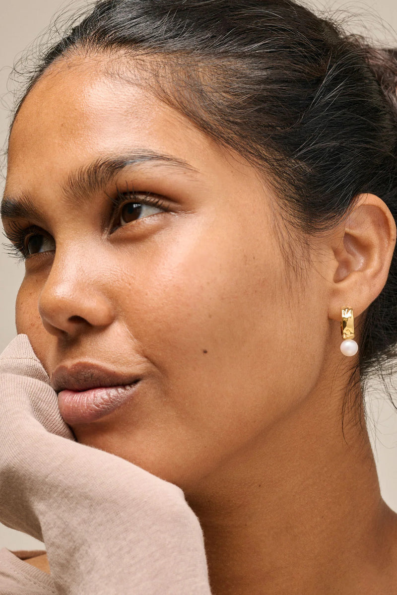 The Avaya pearl hoop is not your ordinary hoop. The contrast between the wavy surface of the hoop and the beautiful, natural freshwater pearl at the bottom creates a handcrafted  and refined look. Attention to detail is paramount, creating a fantastic blend of elegance and playfulness.