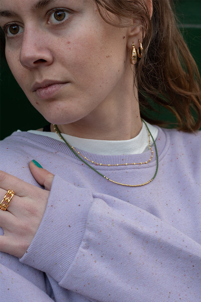 The Lola necklace is a chain style with small coloured enamels. This style creates a colourful detail and can easily be combined with multiple layers