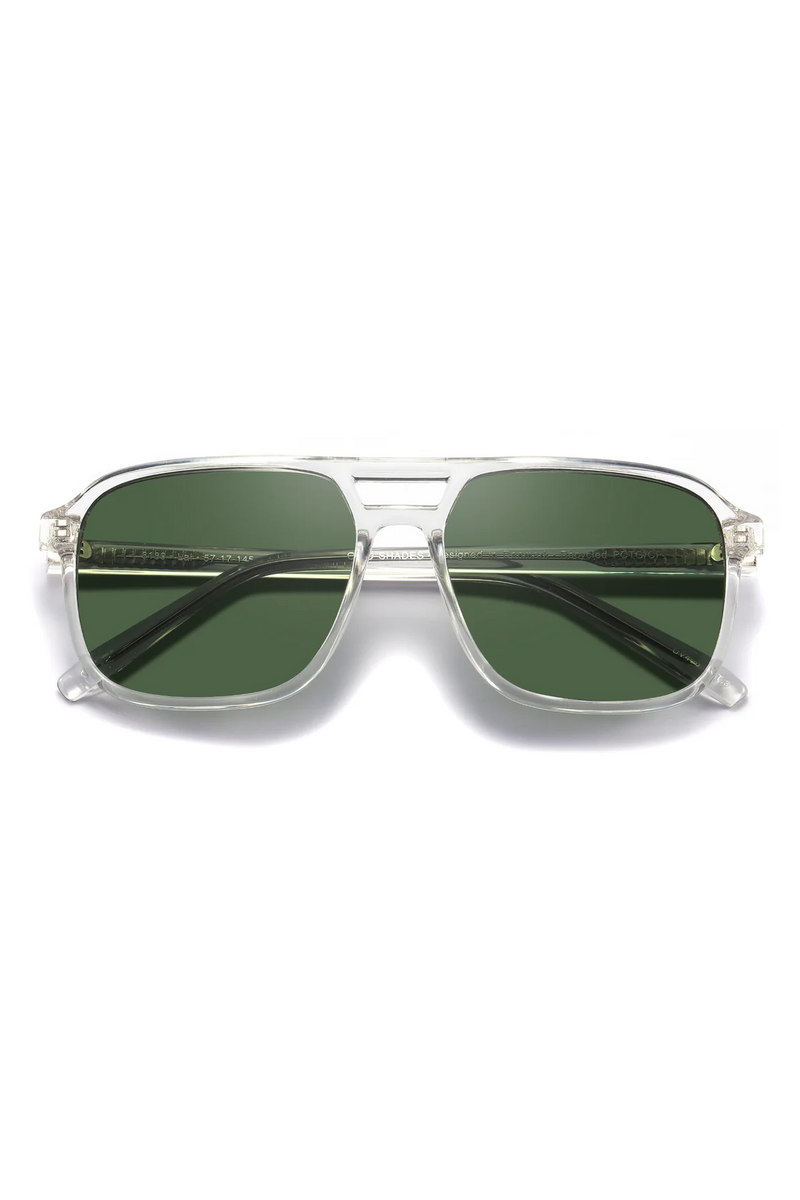 Experience a fusion of clarity and sophistication with the Lai Green sunglasses. Featuring a crystal-clear frame paired with deep green lenses, these shades provide a strikingly modern aesthetic. The minimalist design is perfect for anyone who values both simplicity and a touch of boldness in their style.
