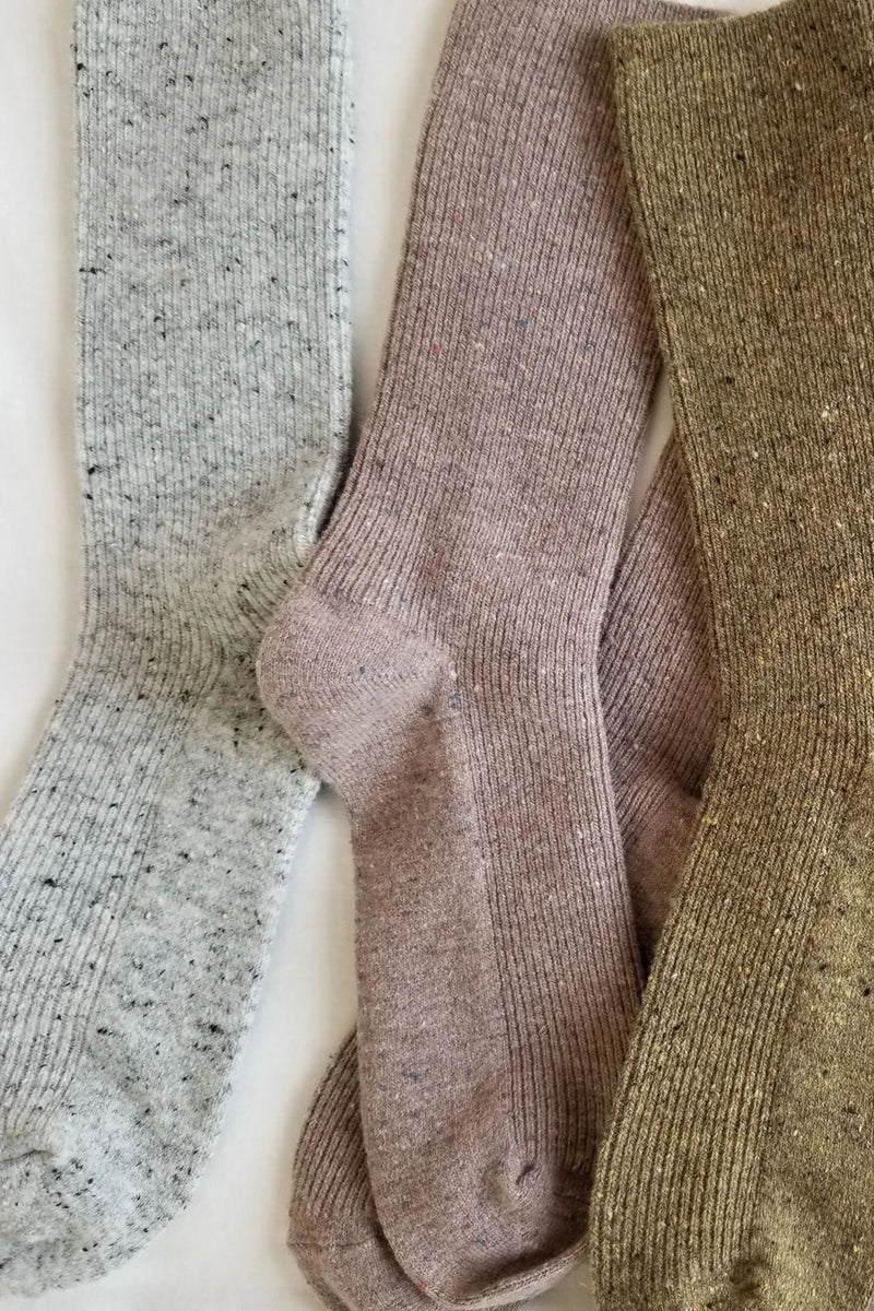 This essential sock to pair with all your winter footwear staples in colder months. The extra length can be worn up for an added layer of warmth from the wool blend yarn or scrunched or folded with your favorite booties.